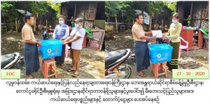 လူမှုဝန်ထမ်း၊ ကယ်ဆယ်ရေးနှင့်ပြန်လည်နေရာချထားရေးဝန်ကြီးဌာန၊ ဘေးအန္တရာယ်ဆိုင်ရာစီမံခန့်ခွဲမှုဦးစီးဌာန၊ ပဲခူးတိုင်းဒေသကြီး၊ တောင်ငူခရိုင်ဦးစီးမှူးရုံးမှ တာဝန်ရှိသူများသည် တောင်ငူမြို့နယ်၊ အမှတ် (၁၁)ရပ်ကွက်တွင် (၂၆-၁၀-၂၀၂၀) ရက်နေ့၌ ဖြစ်ပွားခဲ့သော မီးဘေးကြောင့် ပျက်စီးဆုံးရှုံးခဲ့သည့် နေအိမ် (၁)လုံးအတွက် အိမ်ဆောက်ပစ္စည်းဖိုး (၂၀၀၀၀၀/-)၊ ဘေးသင့်လူဦးရေ (၈) ဦးအတွက် ဆန်ဖိုးထောက်ပံ့ငွေ (၁၆၈၀၀/-)၊ စုစုပေါင်းထောက်ပံ့ငွေ (၂၁၆၈၀၀/-)အား (၂၇-၁၀-၂၀၂၀) ရက်နေ့ (၁၁း၃၀) အချိန်တွင် မြို့နယ်အထွေထွေအုပ်ချုပ်ရေးဦးစီးဌာနမှ တာဝန်ရှိသူများ၊ ကရုဏာရင်ခွင် (အရေးပေါ်ကယ်ဆယ်ရေးနှင့် လူမှုကူညီရေးပရဟိတအသင်း)မှ တာဝန်ရှိသူများနှင့်အတူ ထောက်ပံ့ပေးအပ်ခဲ့ကြောင်း သတင်းရရှိပါသည်။