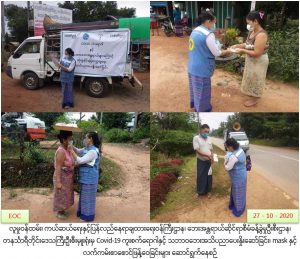 လူမှုဝန်ထမ်း၊ ကယ်ဆယ်ရေးနှင့်ပြန်လည်နေရာချထားရေးဝန်ကြီးဌာန၊ ဘေးအန္တရာယ်ဆိုင်ရာစီမံခန့်ခွဲမှုဦးစီးဌာန၊ တနင်္သာရီတိုင်းဒေသကြီးဦးစီးမှူးရုံးမှ တာဝန်ရှိသူများသည် FUTURE LIGHT အဖွဲ့နှင့်အတူ (၂၇-၉-၂၀၂၀)ရက်နေ့၌ ရေဖြူမြို့နယ် ဇီးကျကျေးရွာ၊ ညင်းထွေးကျေးရွာ၊ ကျောက်ကညှာနှင့် ကျောက်ထောင့်ကျေးရွာတို့တွင် ကျန်းမာရေးနှင့်အားကစားဝန်ကြီးဌာနမှ ထုတ်ပြန်ထားသော Covid-19 ကူးစက်မှုမဖြစ်စေရန် အသိပညာပေးခြင်း၊ ရာသီအလိုက်ဖြစ်ပွားတတ်သော သဘာဝဘေးအန္တရာယ်များနှင့်ပတ်သက်သည့် ဆောင်ရန်/ရှောင်ရန်များအား အသိပညာပေးခြင်း၊ Maskများ ဝေငှပေးခြင်းနှင့် သဘာဝဘေးအသိပညာပေးလက်ကမ်းစာစောင် ဖြန့်ဝေခြင်းများဆောင်ရွက်ခဲ့ကြောင်း သတင်းရရှိပါသည်။
