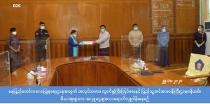 ရှေးဦးစွာ အလုပ်သမား၊ လူဝင်မှုကြီးကြပ်ရေးနှင့် ပြည်သူ့အင်အားဝန်ကြီးဌာန၊ ပြည်ထောင်စု ဝန်ကြီး၏ဇနီးဒေါ်မြသိင်္ဂီက လှူဒါန်းရသည့်အကြောင်းအရင်းကို ရှင်းလင်းပြောကြားပါသည်။