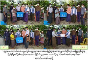 လူမှုဝန်ထမ်း၊ ကယ်ဆယ်ရေးနှင့် ပြန်လည်နေရာချထားရေးဝန်ကြီးဌာန၊ ဘေးအန္တရာယ်ဆိုင်ရာစီမံခန့်ခွဲမှုဦးစီးဌာန၊ မိုးညိုမြို့နယ်ဦးစီးမှူးရုံးမှ တာဝန်ရှိသူများသည် (၂၉-၁၀-၂၀၂၀)ရက်နေ့၊ သာယာဝတီခရိုင်၊ မိုးညိုမြို့နယ်၊ လက်ပံခုန်ကျေးရွာအုပ်စု၊ လူသစ်စုရွာတွင် ဖြစ်ပွားခဲ့သော လေဘေးမှ အမိုးလန်နေအိမ်(၁)လုံးအတွက် အိမ်ဆောက်ပစ္စည်းဖိုးထောက်ပံ့ငွေ (၂၀၀၀၀)ကျပ်၊ အိမ်ထောင်စု(၁)စုရှိ လူဦးရေ (၄)ဦးအတွက် ဆန်ရိက္ခါ(၇)ရက်စာဖိုး ထောက်ပံ့ငွေ(၈၄၀၀)ကျပ်၊စုစုပေါင်းထောက်ပံ့ငွေ (၂၈၄၀၀ိ/-)ကျပ်နှင့် (၁-၁၁-၂၀၂၀)ရက်နေ့၊ ပဲခူးတိုင်းဒေသကြီး၊ သာယာဝတီခရိုင်၊ မိုးညိုမြို့နယ်၊ အိုးဘိုကျွန်းကျေးရွာအုပ်စု၊ အိုးဘိုကျွန်းကျေးရွာတွင် ဖြစ်ပွားခဲ့သော ကမ်းပြိုဘေးမှ ကြိုတင်ပြောင်းရွှေ့နေအိမ်(၆)လုံးအတွက် အိမ်ဆောက်ပစ္စည်းဖိုးထောက်ပံ့ငွေ (၆၀၀၀၀၀/-)ကျပ်၊ အိမ်ထောင်စု(၆)စုရှိ လူဦးရေ(၂၂)ဦးတို့အတွက် ဆန်ရိက္ခါ(၇)ရက်စာဖိုးထောက်ပံငွေ (၄၆၂၀၀/-)ကျပ်၊ စုစုပေါင်းထောက်ပံ့ငွေ(၆၄၆၂၀၀/-)ကျပ်နှင့် ကယ်ဆယ်ရေးပစ္စည်း(၁၁)မျိုး(၆)အိမ်ထောင်စာ အား(၂-၁၁-၂၀၂၀)ရက်နေ့ (၁၃း၀၀)နာရီအချိန်တွင် ဘေးသင့်နေအိမ်များ၌ တိုင်းဒေသကြီးလွှတ်တော်ကိုယ်စားလှယ်(၁)၊ မြို့နယ်အထွေထွေအုပ်ချုပ်ရေးဦးစီးဌာနမှ တာဝန်ရှိသူများ ၊ မြို့နယ်ရဲတပ် ဖွဲ့၊ မြို့နယ်မီးသတ်တပ်ဖွဲ့၊ မြို့နယ်ကြက်ခြေနီအဖွဲ့၊ မြို့နယ်ပြန်/ဆက်မှ တာဝန်ရှိသူများ၊ကျေးရွာအုပ်ချုပ်ရေးမှူးများနှင့်အတူ ပြည်သူလက်ဝယ်အရောက် ထောက်ပံ့ပေးအပ်ခဲ့ပါကြောင်း သတင်းရရှိပါသည်။