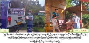 လူမှုဝန်ထမ်း၊ ကယ်ဆယ်ရေးနှင့်ပြန်လည်နေရာချထားရေးဝန်ကြီးဌာန၊ ဘေးအန္တရာယ်ဆိုင်ရာစီမံခန့်ခွဲမှုဦးစီးဌာန၊ ကရင်ပြည်နယ်ဦးစီးမှူးရုံးမှ တာဝန်ရှိသူများသည် (၅-၁၁-၂၀၂၀)ရက်နေ့၊ (၁၁:၀၀)အချိန်မှ (၁၅:၃၀)အချိန်အထိ ဘားအံမြို့နယ်၊ နောင်ကမြိုင်ကျေးရွာ၊ ပေါ့ထော်ကျေးရွာ၊ ကော့ကူးကျေးရွာ၊ မိဇံကျေးရွာ၊ သာနှုံးကျေးရွာ၊ ကော့ထော်ကျေးရွာ၊ ရသဝေါ်ကျေးရွာများရှိ ပြည်သူများအား COVID-19 ကူးစက်မြန်ရောဂါ ပြန့်ပွားမှုများမဖြစ်ပွားစေရန်အတွက် သိရှိလိုက်နာရမည့် အချက်များအား လော်စပီကာဖြင့် အသိပညာပေးဆောင်ရွက်ခဲ့ပြီး Mask များလည်း ဖြန့်ဝေပေးခဲ့ကြောင်း သတင်းရရှိပါသည်။