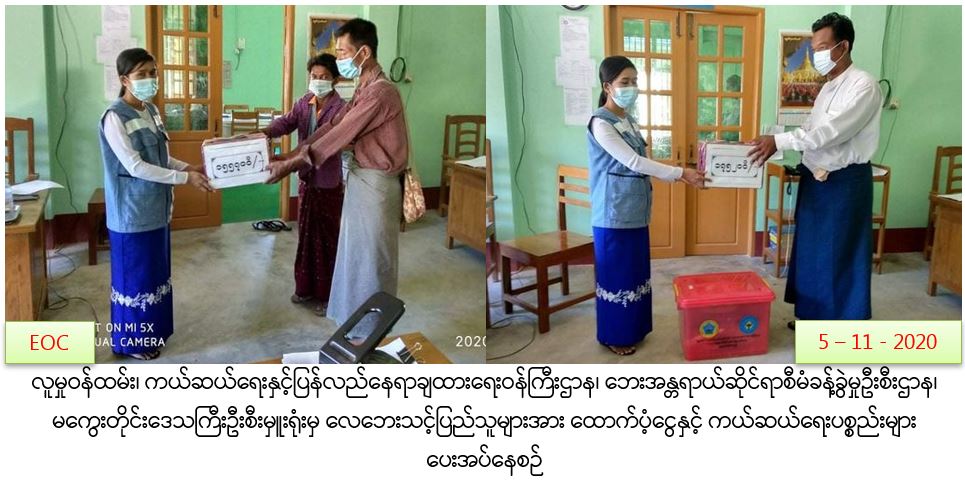 လူမှု၀န်ထမ်း၊ ကယ်ဆယ်ရေးနှင့်ပြန်လည်နေရာချထားရေး၀န်ကြီးဌာန၊ ဘေးအန္တရာယ်ဆိုင်ရာစီမံခန့်ခွဲမှုဦးစီးဌာန၊ မကွေးတိုင်းဒေသကြီးဦးစီးမှူးရုံးမှ တာဝန်ရှိသူများသည် မကွေးမြို့နယ်၊ မြင်ကွန်းကျေးရွာနှင့် မြေနုကျေးရွာတို့တွင် (၄-၁၁-၂၀၂၀) ရက်နေ့တွင် လေပြင်းတိုက်ခတ်မှုကြောင့် ပြိုကျအိမ်ခြေ(၁)လုံး၊ အမိုးလန်အိမ်ခြေ(၆)လုံး၊ အိမ်ထောင်စု(၇)စု၊ လူဦးရေ(၂၉) ဦးတို့အတွက် အိမ်ဆောက်ပစ္စည်းဖိုး (၂၇၀၀၀၀)ကျပ်၊ လူဦးရေ(၂၉)ဦးအတွက် ဆန်ရိက္ခာဖိုးငွေ(၆၀၉၀၀)ကျပ်၊ စုစုပေါင်း(၃၃၀၉၀၀)ကျပ်နှင့် ကယ်ဆယ်ရေးပစ္စည်း (၁၆)မျိုး အိမ်ထောင်စု(၁)စုစာတို့အား ၅-၁၁-၂၀၂၀ ရက်နေ့ (၁၂:၃၀)နာရီအချိန်တွင် ဘေးသင့်ပြည်သူများလက်ဝယ်အရောက် ထောက်ပံ့ပေးအပ်ခဲ့ပါကြောင်း သတင်းရရှိပါသည်။
