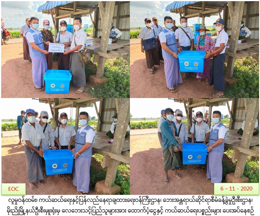 လူမှုဝန်ထမ်း၊ ကယ်ဆယ်ရေးနှင့်ပြန်လည်နေရာချထားရေးဝန်ကြီးဌာန၊ ဘေးအန္တရာယ်ဆိုင်ရာစီမံခန့်ခွဲမှုဦးစီးဌာန၊ မိုးညိုမြို့နယ်ဦးစီးမှူးရုံးမှ တာဝန်ရှိသူများသည် (၁၆-၁၀-၂၀၂၀)ရက်နေ့၊ သာယာဝတီခရိုင်၊ လက်ပံတန်းမြို့နယ်၊ ရေငန်ကျေးရွာအုပ်စု၊ ရေငန်ကျေးရွာတွင် ဖြစ်ပွားခဲ့သော လေဘေးမှ အမိုးလန်နေအိမ်(၁)လုံးအတွက် အိမ်ဆောက်ပစ္စည်းဖိုးထောက်ပံ့ငွေ (၅၀၀၀၀)ကျပ်၊ အိမ်ထောင်စု(၁)စုရှိ လူဦးရေ (၅)ဦးအတွက် ဆန်ရိက္ခါ(၇)ရက်စာဖိုး ထောက်ပံ့ငွေ(၁၀၅၀၀)ကျပ်၊စုစုပေါင်းထောက်ပံ့ငွေ (၆၀၅၀၀ိ/-)ကျပ် အား(၆-၁၁-၂၀၂၀)ရက်နေ့ (၁၂း၀၀)နာရီအချိန်တွင် လက်ပံတန်းမြို့နယ်အထွေထွေအုပ်ချုပ်ရေးဦးစီးဌာနရုံးခန်း၌ ဒုတိယမြို့နယ်အုပ်ချုပ်ရေးမှူး၊ မြို့နယ်မီးသတ်ဦးစီးမှူး၊မြို့နယ်ပြန်/ဆက်ဦးစီးမှူး၊ကျေးရွာအုပ်ချုပ်ရေးမှူး၊ စာရေးနှင့်အတူ ဘေးသင့်ပြည်သူလက်ဝယ်အရောက် ထောက်ပံ့ပေးအပ်ခဲ့ကြောင်း သတင်းရရှိပါသည်။