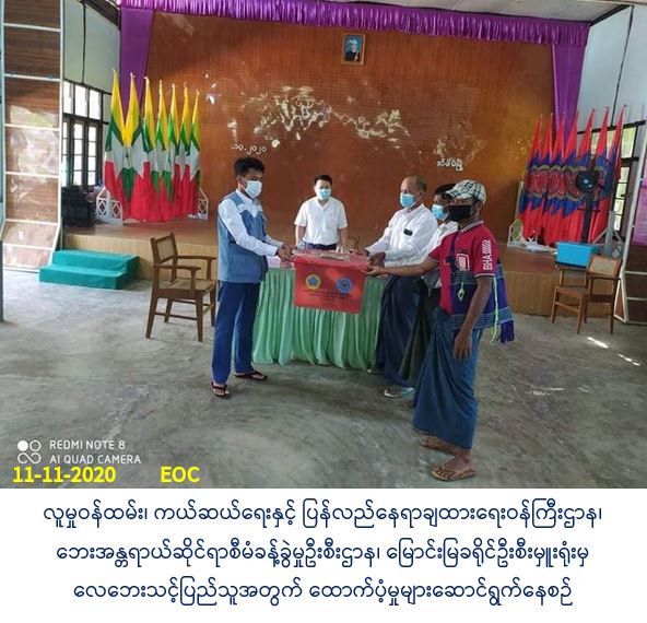လူမှုဝန်ထမ်း၊ ကယ်ဆယ်ရေးနှင့် ပြန်လည်နေရာချထားရေးဝန်ကြီးဌာန၊ ဘေးအန္တရာယ်ဆိုင်ရာစီမံခန့်ခွဲမှုဦးစီးဌာန၊ မြောင်းမြခရိုင်ဦးစီးမှူးရုံးမှ တာဝန်ရှိသူများသည် (၆-၁၁-၂၀၂၀) ရက်နေ့၌ မြောင်းမြခရိုင်၊ အိမ်မဲမြို့နယ်၊ နီစပ်ကြီးကျေးရွာပ်စု၊ ညောင်ချောင်းကျေးရွာနှင့် မိချောင်းကျော်ကျေးရွာတို့တွင် ဖြစ်ပွားခဲ့သော လေဘေးကြောင့် ပြိုကျပျက်စီးနေအိမ်(၁)လုံးအတွက် ကယ်ဆယ်ရေးပစ္စည်း (၁၇) မျိုးပါ (၁) အိမ်ထောင်စာနှင့် အိမ်ဆောက်ပစ္စည်းဖိုးထောက်ပံ့ငွေ (၁၀၀၀၀၀/-)ကျပ်၊ တစ်စိတ်တစ်ပိုင်းပျက်စီးနေအိမ် (၁) လုံးအတွက် အိမ်ဆောက်ပစ္စည်းဖိုးထောက်ပံ့ငွေ (၄၀၀၀၀/-)ကျပ်နှင့် စုစုပေါင်း ဘေးသင့်လူဦးရေ (၁၁) ဦးတို့အတွက် ဆန်ရိက္ခာ(၇)ရက်စာဖိုးထောက်ပံ့ငွေ (၂၃၁၀ဝ/-) ကျပ်အား (၁၁-၁၁-၂၀၂၀) ရက်နေ့၊ (၁၁:၄၀)နာရီအချိန်တွင် အိမ်မဲမြို့နယ်အထွေထွေအုပ်ချုပ်ရေးဦးစီးဌာနတွင် ဘေးသင့်ပြည်သူများထံ သွားရောက်ထောက်ပံ့ ပေးအပ်ခဲ့ပါကြောင်း သတင်းရရှိပါသည်။