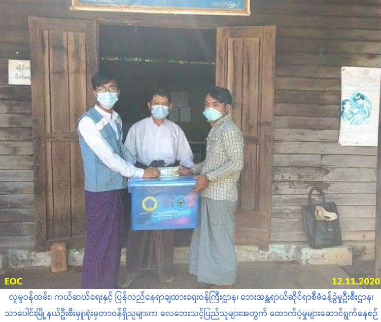 လူမှုဝန်ထမ်း၊ ကယ်ဆယ်ရေးနှင့် ပြန်လည်နေရာချထားရေးဝန်ကြီးဌာန၊ ဘေးအန္တရာယ်ဆိုင်ရာစီမံခန့်ခွဲမှုဦးစီးဌာန၊ သာပေါင်းမြို့နယ်ဦးစီးမှူးရုံးမှတာဝန်ရှိသူများသည် (၉-၁၁-၂၀၂၀) ရက်နေ့တွင် မီးသွေးတိုက်ကျေးရွာအုပ်စု၊ အလယ်ကျွန်းကျေးရွာ၌ လေပြင်းတိုက်ခတ်မှုကြောင့် ဘေးသင့်ပြိုကျပျက်စီးနေအိမ်(၁)လုံးအတွက် အိမ်ဆောက်ပစ္စည်းဖိုးထောက်ပံ့ငွေ(၁၀၀,၀၀ဝ/-)ကျပ်၊ လူဦးရေ(၂)ဦးအတွက် ဆန်ရိက္ခာ(၇)ရက်စာဖိုးထောက်ပံ့ငွေ(၄,၂၀၀/-)ကျပ်၊ စုစုပေါင်း ထောက်ပံ့ငွေ(၁၀၄,၂၀၀/-)ကျပ်နှင့် ကယ်ဆယ်ရေးပစ္စည်း(၁၆)မျိုး (၁)အိမ်ထောင်စာ တန်ဖိုး (၃၄,၈၅၃/-)အား (၁၂-၁၁-၂၀၂၀)ရက်နေ့ (၁၃:၀၀)နာရီအချိန်တွင် ကျေးရွာအုပ်ချုပ်ရေးမှူးနှင့် တာဝန်ရှိသူများ၏ရှေ့မှောက်၌ ဘေးသင့်ပြည်သူများအားထောက်ပံ့ပေးအပ်ခဲ့ပါကြောင်း သတင်းရရှိပါသည်။