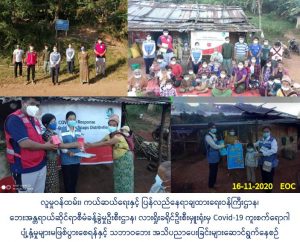 လူမှုဝန်ထမ်း၊ ကယ်ဆယ်ရေးနှင့် ပြန်လည်နေရာချထားရေးဝန်ကြီးဌာန၊ ဘေးအန္တရာယ်ဆိုင်ရာစီမံခန့်ခွဲမှုဦးစီးဌာန၊ လားရှိုးခရိုင်ဦးစီးမှူးရုံးမှ တာဝန်ရှိသူများသည် (၁၆-၁၁-၂၀၂၀) ရက်နေ့တွင် လားရှိုးမြို့နယ်ကြက်ခြေနီအသင်း၊ မိတ်ဆွေမြန်မာတို့နှင့်ပူးပေါင်း၍ လားရှိုးမြို့နယ်၊ လွယ်တောက်ကျေးရွာအုပ်စု၊ ဆယ်မိုင်ကွေ့ကျေးရွာ၌ COVID-19 ကူးစက်မှုမဖြစ်ပွားစေရန် ပြည်သူများ လိုက်နာရမည့် ကျန်းမာရေးအမူအကျင့်များ အသိပညာပေးခြင်းနှင့် သဘာဝဘေးဆိုင်ရာ အသိပညာပေးခြင်းများကို အသံချဲ့စက်များဖြင့် လှည့်လည်ဟောပြောခဲ့ပြီး လက်ဆေးဆပ်ပြာ၊ Mask နှင့် လက်ကမ်းစာစောင် များ ဖြန့်ပေးဝေခြင်းတို့အား ဆောင်ရွက်ခဲ့ပါကြောင်း သတင်းရရှိပါသည်။