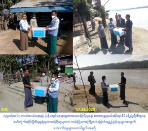 လူမှုဝန်ထမ်း၊ ကယ်ဆယ်ရေးနှင့် ပြန်လည်နေရာချထားရေးဝန်ကြီးဌာန၊ ဘေးအန္တရာယ်ဆိုင်ရာစီမံခန့်ခွဲမှုဦးစီးဌာန၊ မော်လိုက်ခရိုင်ဦးစီးမှူးရုံးမှတာဝန်ရှိသူများသည် (၁၆-၁၁-၂၀၂၀)ရက်နေ့တွင် မော်လိုက်မြို့နယ်၊ ကြာအင်းကျေးရွာအုပ်စု၊ ကြာအင်းကျေးရွာ၌ ဖြစ်ပွားခဲ့သော ကမ်းပြိုဘေး ကြောင့် ကြိုတင်ပြောင်းရွှေ့ခဲ့ရသော အိမ်ထောင်စု(၄)စုအတွက် အိမ်ဆောက်ပစ္စည်းဖိုးထောက်ပံ့ငွေ(၄၀၀,၀၀ဝ/-)ကျပ်၊ လူဦးရေ(၂၁)ဦးအတွက် ဆန်ရိက္ခာဖိုးထောက်ပံ့ငွေ(၄၄,၁၀ဝ/-)ကျပ်၊ စုစုပေါင်းထောက်ပံ့ငွေ(၄၄၄,၁၀ဝ/-)ကျပ်၊ ကယ်ဆယ်ရေးပစ္စည်း(၁၀)မျိုး (၄)အိမ်ထောင်စာနှင့် အဝတ် mask (၄၂)ခုအား (၁၇-၁၀-၂၀၂၀)ရက်နေ့ (၁၃:၀၀)နာရီအချိန်တွင် ဘေးသင့်ပြည်သူ များထံသို့ သွားရောက်ထောက်ပံ့ပေးခဲ့ပါကြောင်း သတင်းရရှိပါသည်။