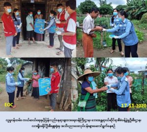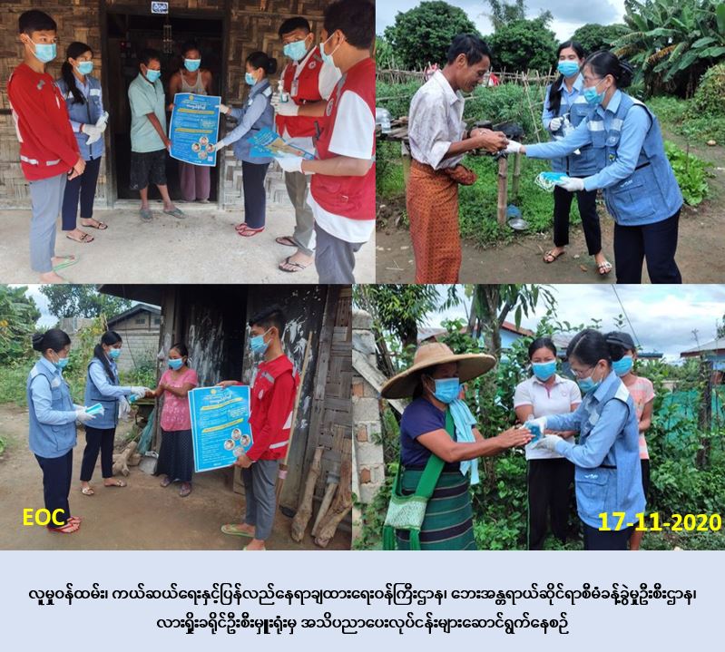 လူမှုဝန်ထမ်း၊ ကယ်ဆယ်ရေးနှင့် ပြန်လည်နေရာချထားရေးဝန်ကြီးဌာန၊ ဘေးအန္တရာယ်ဆိုင်ရာ စီမံခန့်ခွဲမှုဦးစီးဌာန၊ လားရှိုးခရိုင်ဦးစီးမှူးရုံးမှ တာဝန်ရှိသူများသည် (၁၇-၁၁-၂၀၂၀) ရက်နေ့ ညနေပိုင်းတွင် လားရှိုးမြို့နယ်ကြက်ခြေနီ အသင်းနှင့်ပူးပေါင်း၍ လားရှိုးမြို့နယ်၊ တာပုံကျေးရွာအုပ်စု၊ တာပုံကျေးရွာ၊ ဝနားဖကျေးရွာ၊ မန်ကောင်းကျေးရွာတို့၌ COVID-19 ကူးစက်မှုမဖြစ်ပွားစေရန် ပြည်သူများ လိုက်နာရမည့် ကျန်းမာရေးအမူအကျင့်များ အသိပညာပေးခြင်းနှင့် သဘာဝဘေးဆိုင်ရာ အသိပညာပေးခြင်းများကို အသံချဲ့စက်များဖြင့် လှည့်လည်ဟောပြောခဲ့ပြီး COVID-19 ကူးစက်ရောဂါကာကွယ်နိုင်ရန် နှာခေါင်းစည်း အသုံးပြုခြင်းဆိုင်ရာ အကြံပြုချက်များ၊ နှာခေါင်စည်းအသုံးပြုရာတွင် လိုက်နာရမည့် အချက်များ၊ COVID-19 ကာကွယ်ရေး စနစ်တကျလက်ဆေးပေး ပါဝင်သည့် လက်ကမ်းစာစောင်များ ဖြန့်ပေးဝေခြင်း၊ Hand Gel များဖြင့် လက်သန့်စင်ပေးခြင်း၊ အပူချိန်တိုင်းကိရိယာဖြင့် ကိုယ်အပူချိန်တိုင်းပေးခြင်းတို့အား ဆောင်ရွက်ခဲ့ပါကြောင်း သတင်းရရှိပါသည်။