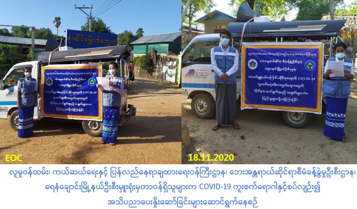 လူမှုဝန်ထမ်း၊ ကယ်ဆယ်ရေးနှင့် ပြန်လည်နေရာချထားရေးဝန်ကြီးဌာန၊ ဘေးအန္တရာယ်ဆိုင်ရာစီမံခန့်ခွဲမှုဦးစီးဌာန၊ ရေနံချောင်းမြို့နယ်ဦးစီးမှူးရုံးမှတာဝန်ရှိသူများသည် (၁၈-၁၁-၂၀၂၀) ရက်နေ့၊ နံနက်ပိုင်းတွင် ရေနံချောင်းမြို့နယ်၊ ရုံဆိပ်မြောက်ကျေးရွာ၊ ရုံးဆိပ်တောင်ကျေးရွာနှင့် ဂွေးကုန်းကျေးရွာများတွင် Covid-19 ကူးစက်ရောဂါနှင့်စပ်လျဉ်း၍ ဆောင်ရန်/ ရှောင်ရန် အချက်များအား အသိပညာပေးနှိုးဆော်ခဲ့ပါကြောင်း သတင်းရရှိပါသည်။
