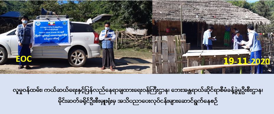 လူမှုဝန်ထမ်း၊ ကယ်ဆယ်ရေးနှင့်ပြန်လည်နေရာချထားရေးဝန်ကြီးဌာန၊ ဘေးအန္တရာယ်ဆိုင်ရာ စီမံခန့်ခွဲမှုဦးစီးဌာန၊ မိုင်းဆတ်ခရိုင်ဦးစီးမှူးရုံးမှ တာဝန်ရှိသူများသည် (၁၉-၁၁-၂၀၂၀) ရက်နေ့ တွင် မိုင်းဆတ်မြို့နယ်၊ ဟိုနားကျေးရွာ၊ နားလည်ကျေးရွာနှင့် ထူးဒေါ့ရွာတို့၌ Covid-19 ဒုတိယလှိုင်းကာလအတွင်း ပြည်သူများလိုက်နာရမည့် ကျန်းမာရေးအမူအကျင့်များ အသိပညာပေးခြင်းနှင့် သဘာဝဘေးဆိုင်ရာအသိပညာပေးခြင်းများကို အသံချဲ့စက်များဖြင့် လှည့်လည်ဟောပြောခြင်း ၊ Mask နှင့် အသိပညာပေးလက်ကမ်းစာစောင်များ ဖြန့်ဝေပေးခြင်းတို့အား ဆောင်ရွက်ခဲ့ပါကြောင်း သတင်းရရှိပါသည်။