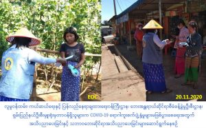 လူမှုဝန်ထမ်း၊ ကယ်ဆယ်ရေးနှင့် ပြန်လည်နေရာချထားရေးဝန်ကြီးဌာန၊ ဘေးအန္တရာယ်ဆိုင်ရာစီမံခန့်ခွဲမှုဦးစီးဌာန၊ ရှမ်းပြည်နယ်ဦးစီးမှူးရုံးမှတာဝန်ရှိသူများသည် (၂၀-၁၁-၂၀၂၀)ရက်နေ့၊ နံနက်ပိုင်းတွင် ရွာငံမြို့နယ်၊ ရေလှကျေးရွာနှင့် ညောင်ပင်ခွကျေးရွာတို့၌ COVID-19 ဒုတိယလှိုင်း ကာလအတွင်း ပြည်သူများလိုက်နာရမည့် ကျန်းမာရေးအမူအကျင့်များ အသိပညာပေးခြင်းနှင့် သဘာဝဘေးဆိုင်ရာအသိပညာပေးခြင်းများကို Hand Speaker အသံချဲ့စက်များဖြင့် လှည့်လည်ဟောပြောခြင်း၊ Mask နှင့် အသိပညာပေးလက်ကမ်းစာစောင်များ ဖြန့်ဝေပေးခြင်းတို့အား ဆောင်ရွက်ခဲ့ပါကြောင်း သတင်းရရှိပါသည်။