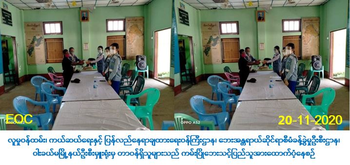 လူမှုဝန်ထမ်း၊ ကယ်ဆယ်ရေးနှင့် ပြန်လည်နေရာချထားရေးဝန်ကြီးဌာန၊ ဘေးအန္တရာယ် ဆိုင်ရာစီမံခန့်ခွဲမှုဦးစီးဌာန၊ ဝါးခယ်မမြို့နယ်ဦးစီးမှူးရုံးမှ တာဝန်ရှိသူများသည် မြောင်းမြ ခရိုင်၊ ဝါးခယ်မမြို့နယ်၊ ကမ်းပြိုကျေးရွာအုပ်စု၊ ရေကျော်ကျေးရွာတွင် (၁၈-၁၁-၂၀၂၀) ရက်နေ့၌ ဖြစ်ပွားခဲ့သော ကမ်းပြိုဘေးကြောင့် ကြိုတင်ပြောင်းရွှေ့နေအိမ် (၁) လုံး၊ အိမ်ထာင်စု (၁) စုမှ လူဦးရေ (၄) ဦးတို့အတွက် အိမ်ဆောက်ပစ္စည်းရန်ပုံငွေ (၁၀၀,၀၀ဝိ/-) ကျပ်၊ ဆန်ရိက္ခာရန်ပုံငွေ (၈,၄၀ဝိ/-) ကျပ်၊ စုစုပေါင်းရန်ပုံငွေ (၁၀၈,၄၀၀ိ/-) ကျပ်အား (၂၀-၁၁-၂၀၂၀) ရက်နေ့၊ (၁၃း၀၀) နာရီအချိန်တွင် ရွှေလောင်းမြို့၊ အုပ်ချုပ်ရေးမှူးရုံးတွင် ဘေးသင့်ပြည်သူများထံ လက်ဝယ်အရောက် သွားရောက်ထောက်ပံ့ပေးအပ်ခဲ့ကြောင်း သတင်းရရှိပါသည်။