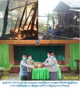 လူမှုဝန်ထမ်း၊ ကယ်ဆယ်ရေးနှင့် ပြန်လည်နေရာချထားရေးဝန်ကြီးဌာန၊ ဘေးအန္တရာယ် ဆိုင်ရာစီမံခန့်ခွဲမှုဦးစီးဌာန၊ ဟင်္သာတခရိုင်ဦးစီးမှူးရုံးမှ တာဝန်ရှိသူများသည် (၂၀-၁၁-၂၀၂၀) ရက်နေ့တွင် ဟင်္သာတခရိုင်၊ လေးမျက်နှာမြို့နယ်၊ မဲဇလီအုပ်စု၊ မဲဇလီကျေးရွာ၌ ဖြစ်ပွားခဲ့ သော မီးဘေးကြောင့် တစ်စိတ်တစ်ပိုင်းပျက်စီးဆုံးရှုံးခဲ့သည့်အတွက် အိမ်ဆောက်ပစ္စည်းဖိုး ရန်ပုံငွေ (၉၀,၀၀ဝိ/-) ကျပ်၊ လူဦးရေ (၅) ဦးအတွက် ဆန်ရိက္ခာ (၇) ရက်စာရန်ပုံငွေ (၁၀,၅၀ဝိ/-) ကျပ် ၊ စုစုပေါင်းကယ်ဆယ်ရေးရန်ပုံငွေ (၁၀၀,၅၀ဝိ/-) ကျပ်တို့ကို (၂၃-၁၁-၂၀၂၀) ရက်နေ့၊ (၁၀:၀၀)နာရီအချိန်တွင် လေးမျက်နှာမြို့နယ်၊ အထွေထွေအုပ်ချုပ်ရေး ဦးစီးဌာန၌ သက်ဆိုင်ရာတာဝန်ရှိသူများနှင့်အတူ ဘေးသင့်ပြည်သူများထံ လက်ဝယ် အရောက် ထောက်ပံ့ပေးအပ်ခဲ့ကြောင်း သတင်းရရှိပါသည်။