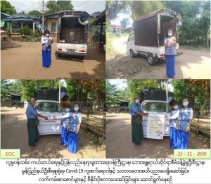 လူမှုဝန်ထမ်း၊ ကယ်ဆယ်ရေးနှင့်ပြန်လည်နေရာချထားရေးဝန်ကြီးဌာန၊ ဘေးအန္တရာယ်ဆိုင်ရာစီမံခန့်ခွဲမှုဦးစီးဌာန၊ မွန်ပြည်နယ်ဦးစီးမှူးရုံးမှ တာဝန်ရှိသူများသည် (၂၃-၁၁-၂၀၂၀) ရက်နေ့၌ ကျိုက်မရောမြို့နယ်၊ မင်းရွာကျေးရွာနှင့် ရွာသစ်ကျေးရွာတို့တွင် COVID-19 ရောဂါကူးစက်ပြန့်ပွားမှုများ မဖြစ်ပွားစေရေးအတွက် ဆောင်ရန်/ ရှောင်ရန်အချက်များအား လည်းကောင်း၊ သဘာဝဘေးအန္တရာယ်များနှင့်ပတ်သက်၍ ဆောင်ရန်၊ ရှောင်ရန်အချက်များ အားလည်းကောင်းအသိပညာပေးဆော်ဩခဲ့ပြီး ပြည်သူလူထုအား သဘာဝဘေးနှင့် COVID-19ရောဂါ အသိပညာပေး လက်ကမ်းစာစောင် များနှင့် ဗွီနိုင်းများအား ဖြန့်ဝေပေးခဲ့ကြောင်း သတင်းရရှိပါသည်။