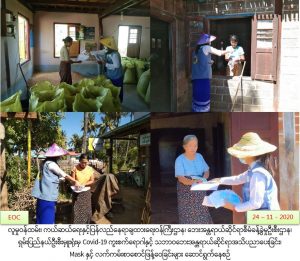 (၂၄.၁၁.၂၀၂၀)ရက်နေ့၊ နံနက်ပိုင်းတွင် လူမှုဝန်ထမ်း၊ ကယ်ဆယ်ရေးနှင့်ပြန်လည်နေရာချထားရေးဝန်ကြီးဌာန၊ ဘေးအန္တရာယ်ဆိုင်ရာစီမံခန့်ခွဲမှုဦးစီးဌာန၊ ရှမ်းပြည်နယ်ဦးစီးမှူးရုံးမှ တာဝန်ရှိသူများသည် ညောင်ရွှေမြို့နယ်၊ ပေါ်နော်ကျေးရွာနှင့် ဇီးပင်ကုန်းကျေးရွာတို့၌ COVID-19 ဒုတိယလှိုင်းကာလအတွင်း ပြည်သူများ လိုက်နာရမည့်ကျန်းမာရေးအမူအကျင့်များ အသိပညာပေးခြင်းနှင့် သဘာဝဘေးဆိုင်ရာ အသိပညာပေးခြင်းများကို Hand Speaker အသံချဲ့စက်များဖြင့် လှည့်လည်ဟောပြောခြင်း ၊ Mask နှင့် အသိပညာပေးလက်ကမ်းစာစောင်များ ဖြန့်ဝေပေးခြင်းများ ဆောင်ရွက်ခဲ့ကြောင်း သတင်းရရှိပါသည်။