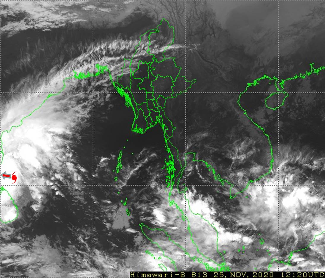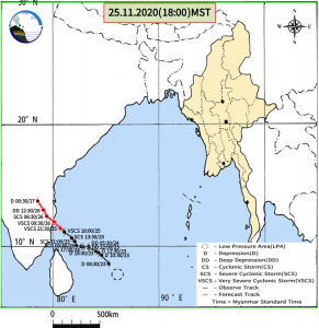 ဘင်္ဂလားပင်လယ်အော်အနောက်တောင်ပိုင်းတွင် ဖြစ်ပေါ်နေသော အားအလွန် ကောင်းသော ဆိုင်ကလုန်းမုန်တိုင်း (Very Severe Cyclonic Storm) “နီဗာ”(NIVAR)သည် အနောက်မြောက်ဘက်သို့ ရွေ့လျားခဲ့ပြီး၊ အိန္ဒိယ နိုင်ငံကို ပူဒူချယ်ရီ (Puducherry)ကမ်းခြေအနီးမှ ဖြတ်ကျော်ဝင်ရောက် လျက်ရှိပါသည်။