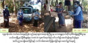 လူမှုဝန်ထမ်း၊ ကယ်ဆယ်ရေးနှင့်ပြန်လည်နေရာချထားရေးဝန်ကြီးဌာန၊ ဘေးအန္တရာယ်ဆိုင်ရာစီမံခန့်ခွဲမှုဦးစီးဌာန၊ ဟင်္သာတခရိုင်ဦးစီးမှူးရုံးမှ တာဝန်ရှိသူများသည် (၂၅-၁၁-၂၀၂၀)ရက်နေ့၊ (ဝ၈း၀၀)နာရီအချိန် မှ (၁၂:၀၀)နာရီအချိန်ထိ လေးမျက်နှာမြို့နယ်၊ လှော်ကထားကျေးရွာအုပ်စု၊ (ဥယျာဥ်ကုန်း၊တောင်ပေကုန်း၊ စောပြာ၊ လယ်ဦးစု)ကျေးရွာတို့တွင် ကျန်းမာရေးနှင့်အားကစားဝန်ကြီးဌာန မှ ထုတ်ပြန်ထားသော Covid-19 ကူးစက်ဖြစ်ပွါးမှု မပေါ်ပေါက်စေရေး ပြည်သူသို့ပန်ကြားချက်အား အများပြည်သူများသိရှိလိုက်နာရန် ကွင်းဆင်းလှည့်လှည်၍ အသိပညာပေးလုပ်ငန်းများပြုလုပ်ဆောင်ရွက်ခဲ့ပြီး နှာခေါင်းစည်း(Mask)၊ သဘာ၀ဘေးအသိပညာပေးလက်ကမ်းစာစောင်များ ဝေငှခဲ့ကြောင်း သတင်းရရှိပါသည်။