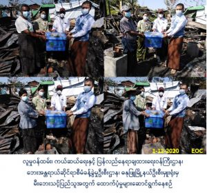 လူမှုဝန်ထမ်း၊ ကယ်ဆယ်ရေးနှင့် ပြန်လည်နေရာချထားရေးဝန်ကြီးဌာန၊ ဘေးအန္တရာယ်ဆိုင်ရာစီမံခန့်ခွဲမှုဦးစီးဌာန၊ ဓနုဖြူမြို့နယ်ဦးစီးမှူးရုံးမှ တာဝန်ရှိသူများသည် (၂၇-၁၁-၂၀၂၀) ရက်နေ့၌ ဧရာဝတီတိုင်းဒေသကြီး၊ မအူပင်ခရိုင်၊ ဓနုဖြူမြို့၊ အမှတ် (၁၁) ရပ်ကွက်၊ အောင်ဇေယျလမ်းတွင် ဖြစ်ပွားခဲ့သော မီးဘေးကြောင့် မီးလောင်ကျွမ်းပျက်စီးခဲ့သည့် နေအိမ် (၄)လုံး၊ အိမ်ထောင်စု(၄)စုမှ လူဦးရေ(၁၆)ဦးအတွက် အိမ်ဆောက်ပစ္စည်းဖိုးထောက်ပံ့ငွေ (၈၀၀,၀၀၀/-)ကျပ်၊ ဆန်ရိက္ခာ(၇)ရက်စာ ဖိုးထောက်ပံ့ငွေ (၃၃,၆၀၀/-)ကျပ်၊ ဒဏ်ရာရရှိသူ(၃)ဦးအတွက် ထောက်ပံ့ငွေ (၁၅၀,၀၀၀/-)ကျပ်၊ ကယ်ဆယ်ရေးပစ္စည်း (၁၉)မျိုးပါ (၁)ပုံးနှင့် ကယ်ဆယ်ရေးပစ္စည်း (၁၇)မျိုးပါ (၃)ပုံးတို့အား (၁-၁၂-၂၀၂၀)ရက်နေ့၊ (၁၃:၄၅) နာရီအချိန်တွင် မီးဘေးသင့်ပြည်သူများ လက်ဝယ်သို့အရောက် ကွင်းဆင်းထောက်ပံ့ခဲ့ပါကြောင်း သတင်းရရှိပါသည်။
