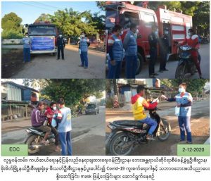လူမှုဝန်ထမ်း၊ ကယ်ဆယ်ရေးနှင့် ပြန်လည်နေရာချထားရေးဝန်ကြီးဌာန၊ ဘေးအန္တရာယ်ဆိုင်ရာစီမံခန့်ခွဲမှုဦးစီးဌာန၊ မိုးမိတ်မြို့နယ်ဦးစီးမှူးရုံးမှ တာဝန်ရှိသူများသည် (၂-၁၂-၂၀၂၀) ရက်နေ့တွင် မီးသတ်ဦးစီးဌာနနှင့်ပူးပေါင်း၍ မိုးမိတ်မြို့မြို့မဈေးနှင့် သားငါးနှင့် ကုန်စိမ်းယာယီဈေးတို့တွင် Covid-19 ရောဂါကူးစက်မှု မဖြစ်ပွားစေရန်နှင့် သဘာဝဘေးနှင့်ပတ်သက်သည့် ဆောင်ရန်/ရှောင်ရန်များကို ရပ်ကွက်နေ ပြည်သူတို့အား အသိပညာပေးအစီအစဉ်ကို အသံချဲ့စက်အသုံးပြု၍ဟောပြောခြင်း၊နှာခေါင်းစည်း (Mask)များဖြန့်ဝေခြင်းနှင့် လက်ကမ်းစာစောင်များဖြန့်ဝေခြင်းတို့ ဆောင်ရွက်ခဲ့ကြောင်း သတင်းရရှိပါသည်။