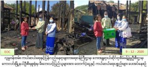 လူမှုဝန်ထမ်း၊ ကယ်ဆယ်ရေးနှင့်ပြန်လည်နေရာချထားရေးဝန်ကြီးဌာန၊ ဘေးအန္တရာယ်ဆိုင်ရာစီမံခန့်ခွဲမှုဦးစီးဌာန၊ ကောလင်းမြို့နယ်ဦးစီးမှူးရုံးမှ ကောလင်းမြို့နယ်၊ မင်းတဲကြီးရပ်ကွက်တွင် (၈.၁၂.၂၀၂၀) ရက်နေ့၌ မီးဘေးသင့်အိမ်ထောင်စု(၁)စုအတွက် ကယ်ဆယ်ရေးပစ္စည်း(၁၇)မျိုး (၁)အိမ်ထောင်စာ၊ အိမ်ဆောက်ပစ္စည်းဖိုးထောက်ပံ့ငွေ(၂၀၀၀၀၀ိ/-)နှင့် ဘေးသင့်လူဦးရေ (၂)ဦးအတွက် ဆန်ရိက္ခာဖိုးထောက်ပံ့ငွေ(၄၂၀၀ိ/-)၊ စုစုပေါင်းထောက်ပံ့ငွေ(၂၀၄၂၀၀ိ/-)အား (၉.၁၂.၂၀၂၀)ရက်နေ့(၁၃း၃၀)နာရီအချိန်တွင် ရပ်ကွက်အုပ်ချုပ်ရေးမှူးနှင့်အတူ ဘေးသင့်ပြည်သူထံသို့ သွားရောက်ထောက်ပံ့ပေးအပ်ခဲ့ကြောင်း သတင်းရရှိပါသည်။