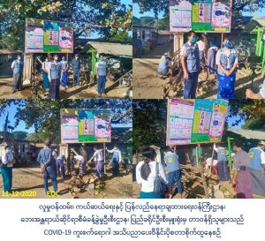 လူမှုဝန်ထမ်း၊ ကယ်ဆယ်ရေးနှင့် ပြန်လည်နေရာချထားရေးဝန်ကြီးဌာန၊ ဘေးအန္တရာယ်ဆိုင်ရာစီမံခန့်ခွဲမှုဦးစီးဌာန၊ ပြည်ခရိုင်ဦးစီးမှူးရုံးမှ တာဝန်ရှိသူများသည် (၁၁-၁၂-၂၀၂၀) ရက်နေ့၌ ပြည်ခရိုင်၊ ပြည်မြို့နယ်၊ ခေတ္တရာမြို့သစ်ဈေးတွင် COVID-19 ကူးစက်ရောဂါ အသိပညာပေး ဗီနိုင်းမြေစိုက်ဆိုင်းဘုတ် စိုက်ထူခြင်းအား မြို့နယ်ပြန်/ဆက်၊ ဈေးစည်ပင်တို့နှင့်ပူးပေါင်းဆောင်ရွက်ခဲ့ပါကြောင်း သတင်းရရှိပါသည်။