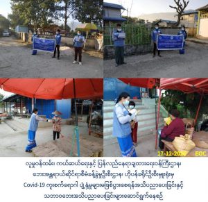 လူမှုဝန်ထမ်း၊ ကယ်ဆယ်ရေးနှင့် ပြန်လည်နေရာချထားရေးဝန်ကြီးဌာန၊ ဘေးအန္တရာယ်ဆိုင်ရာစီမံခန့်ခွဲမှုဦးစီးဌာန၊ ဟိုပန်ခရိုင်ဦးစီးမှူးရုံးမှ တာဝန်ရှိသူများသည် (၁၇-၁၂-၂၀၂၀) ရက်နေ့၌ ဟိုပန်မြို့နယ်၊ ကောင်းဟုန်းရပ်ကွက်နှင့် မန်မိုင်ရပ်ကွက် တို့တွင် Covid-19 ကူးစက်ရောဂါ ပျံ့နှံ့မှုများမဖြစ်ပွားစေရန် ပြည်သူများ လိုက်နာရမည့် ကျန်းမာရေးအမူအကျင့်များ အသိပညာပေးခြင်းနှင့် သဘာဝဘေးဆိုင်ရာ အသိပညာပေးခြင်း၊ Mask နှင့် အသိပညာပေးလက်ကမ်းစာစောင်များ ဖြန့်ပေးဝေခြင်းတို့အား ဆောင်ရွက်ခဲ့ပါကြောင်း သတင်းရရှိပါသည်။