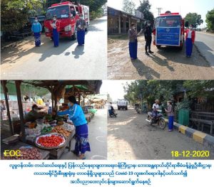 လူမှုဝန်ထမ်း၊ ကယ်ဆယ်ရေးနှင့် ပြန်လည်နေရာချထားရေးဝန်ကြီးဌာန၊ ဘေးအန္တရာယ် ဆိုင်ရာစီမံခန့်ခွဲမှုဦးစီးဌာန၊ ကသာခရိုင်ဦးစီးမှူးရုံးမှ တာဝန်ရှိသူများသည် (၁၈-၁၂-၂၀၂၀) ရက်နေ့တွင် ကသာခရိုင်၊ အင်းတော်မြို့၊ အောင်ဇေယျရပ်ကွက်၊ အောင်မေတ္တာရပ်ကွက်၊ အောင်ချမ်းသာရပ်ကွက်၊ အောင်မင်္ဂလာရပ်ကွက်၊ စင့်ဟောက်ကျေးရွာ၊ လက်ပန်ကုန်း ကျေးရွာ၊ နန့်ခင့်ကျေးရွာ၊ လယ်ပြင်ကျေးရွာ၊ ရွှေသီဘာကျေးရွာ၊ နားခါကျေးရွာ၊ နန်းကင် ကျေးရွာတို့တွင် (၁၀:၃၀)နာရီမှ (၁၂:၃၀)နာရီအချိန်အထိ ရာသီအလိုက်ဖြစ်ပွားတတ်သော သဘာဝဘေးအန္တရာယ်များ၊ (COVID-19) နှင့်ပတ်သက်၍ ပြည်သူလူထုသို့ အသိပညာပေး လုပ်ငန်းဆောင်ရွက်ခြင်းနှင့်ငလျင်ဘေးလက်ကမ်းစာစောင်၊ မီးဘေးလက်ကမ်းစာစောင်၊ လေပြင်းဘေးလက်ကမ်းစာစောင်တို့ကို ဖြန့်ဝေခြင်းလုပ်ငန်းများ ဆောင်ရွက်ခဲ့ကြောင်း သတင်းရရှိပါသည်။
