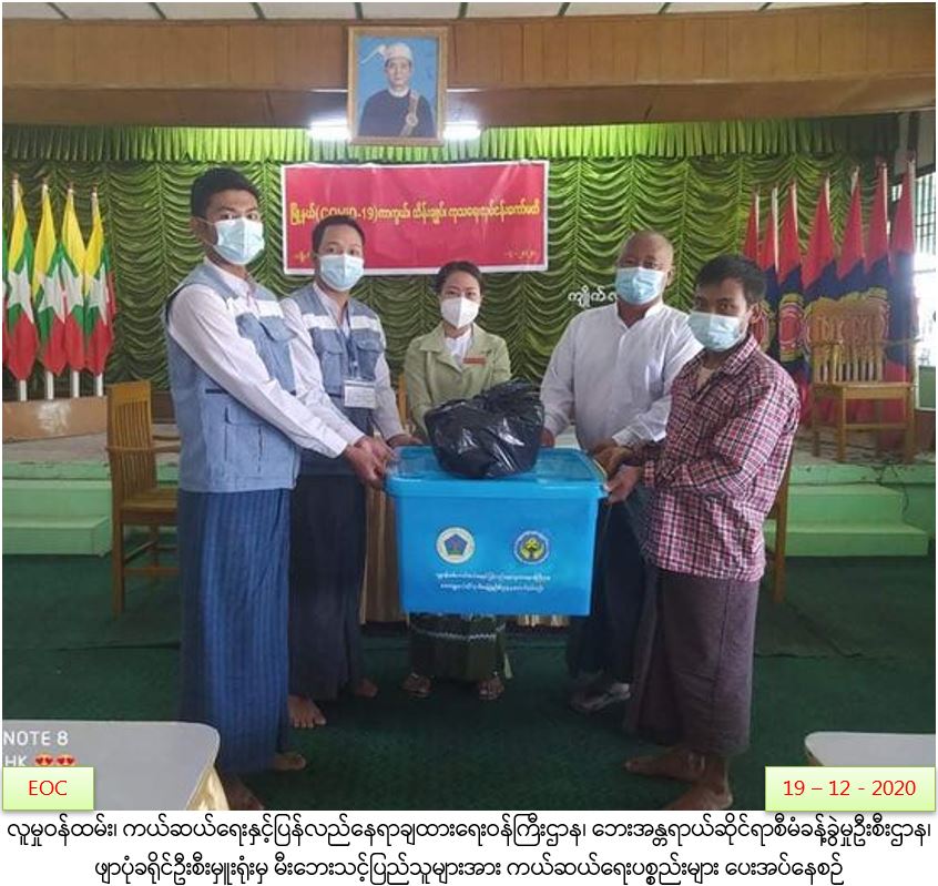 လူမူဝန်ထမ်း၊ ကယ်ဆယ်ရေးနှင့်ပြန်လည်နေရာချထားရေးဝန်ကြီးဌာန၊ ဘေးအန္တရာယ်ဆိုင်ရာစီမံခန့်ခွဲမှုဦးစီးဌာန၊ ဖျာပုံခရိုင်ဦးစီးမှူးရုံးမှ ကျိုက်လတ်မြို့နယ်၊ ထိန်ကျွန်းကျေးရွာအုပ်စု၊ ထိန်ကျွန်းကျေးရွာတွင် (၁၈-၁၂-၂၀၂၀)ရက်နေ့(၀၃:၀၀)နာရီအချိန်၌ မီးလောင်မှုဖြစ်ပွားခဲ့ရာ အိမ်ခြေ(၁)လုံးမီးလောင်ဆုံးရှုံးခဲ့ပြီး အိမ်ထောင်စု(၁)စုမှ လူဦးရေ( ၄ )ဦးတို့ မီးဘေးသင့်ခဲ့ပါသဖြင့် အဆိုပါမီးဘေးသင့်ပြည်သူများအား အိမ်ဆောက်ပစ္စည်းဖိုးထောက်ပံ့ငွေကျပ်( ၁၀၀,၀၀ဝိ/-)၊ ဆန်ရိက္ခာဖိုးထောက်ပံ့ငွေကျပ်( ၈၄၀ဝိ/-)နှင့် ကယ်ဆယ်ရေးပစ္စည်း( ၁၇) မျိုး အိမ်ထောင်စု(၁)စုစာ စုစုပေါင်းထောက်ပံ့ငွေ(၁၀၈၄၀ဝိ/-)အား ကျိုက်လတ်မြို့နယ်အထွေထွေအုပ်ချုပ်ရေးမှူးနှင့်အတူ ဘေးသင့်ပြည်သူများထံသို့ (၁၉-၁၂-၂၀၂၀)ရက်နေ့ (၁၁:၀၀)နာရီအချိနိ၌ သွားရောက်၍ ထောက်ပံ့ပေးခဲ့ကြောင်း သတင်းရရှိပါသည်။