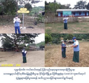 လူမှုဝန်ထမ်း၊ ကယ်ဆယ်ရေးနှင့် ပြန်လည်နေရာချထားရေးဝန်ကြီးဌာန၊ ဘေးအန္တရာယ်ဆိုင်ရာစီမံခန့်ခွဲမှုဦးစီးဌာန၊ မိုင်းဖြတ်မြို့နယ်ဦးစီးမှူးရုံးမှ တာဝန်ရှိသူများသည် (၂၁-၁၂-၂၀၂၀) ရက်နေ့တွင် မိုင်းဖြတ်မြို့နယ်၊ နမ့်ယောင်းကျေးရွာနှင့် ဆားလို့ကျေးရွာတို့တွင် Covid-19 ကူးစက်ရောဂါ ပျံ့နှံ့မှုများမဖြစ်ပွားစေရန် ပြည်သူများ လိုက်နာရမည့်ကျန်းမာရေးအမူအကျင့်များ၊ သဘာဝဘေးဆိုင်ရာ အသိပညာပေးခြင်းတို့နှင့် နှာခေါင်းစည်းများ၊ လက်ဆေးဆပ်ပြာများ၊ Covid-19 အသိပညာ ပေး လက်ကမ်းစာစောင်များ ဖြန့်ပေးဝေခြင်းတို့ ဆောင်ရွက်ခဲ့ပါကြောင်း သတင်းရရှိပါသည်။