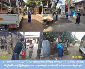 လူမှုဝန်ထမ်း၊ ကယ်ဆယ်ရေးနှင့် ပြန်လည်နေရာချထားရေးဝန်ကြီးဌာန၊ ဘေးအန္တရာယ်ဆိုင်ရာစီမံခန့်ခွဲမှုဦးစီးဌာန၊ စစ်ကိုင်းတိုင်းဒေသကြီးဦးစီးမှူးရုံးမှ တာဝန်ရှိသူများသည် (၂၁-၁၂-၂၀၂၀) ရက်နေ့တွင်၊ စစ်ကိုင်းတိုင်းဒေသကြီး၊ မုံရွာခရိုင်၊ မုံရွာမြို့နယ်အတွင်းရှိ အလုံရပ်ကွက်၊ မင်းဒေါင့်ရပ်ကွက်၊ ကန်တော်ဦးရပ်ကွက်၊ ဗဒုံရပ်ကွက်၊ ရတနာပုံရပ်ကွက်၊ ကျောက်ကျင်းရပ်ကွက်၊ သာစည်ရပ်ကွက်၊ သလ္လာရပ်ကွက်တို့တွင် COVID-19 ကူးစက်ရောဂါနှင့်ပတ်သတ်၍ အသိပညာပေးခြင်း၊ သဘာဝဘေးအန္တရယ်များ၏ ဆောင်ရန်ရှောင်ရန်နှင့်ပတ်သတ်၍ အသိပညာပေးခြင်း၊ သဘာဝဘေးလက်ကမ်းစာစောင်များအား ပြည်သူလူထုသို့ ဖြန့်ဝေခြင်းကို ဆောင်ရွက်ခဲ့ပါကြောင်း သတင်းရရှိပါသည်။