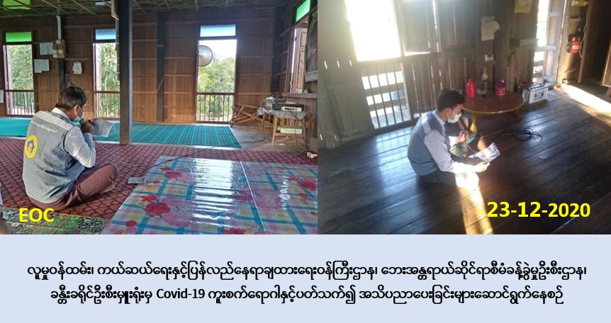 လူမှု၀န်ထမ်း၊ ကယ်ဆယ်ရေးနှင့် ပြန်လည်နေရာချထားရေး၀န်ကြီးဌာန၊ ဘေးအန္တရာယ်ဆိုင်ရာ စီမံခန့်ခွဲမှုဦးစီးဌာန၊ ခန္တီးခရိုင်ဦးစီးမှူးရုံးမှ တာ၀န်ရှိသူများသည် (၂၃-၁၂-၂၀၂၀) ရက်နေ့၊ (၁၅:၀၀) နာရီမှစ၍ ခန္တီးမြို့နယ်၊ စိန်နန်းကျေးရွာနှင့် သာယာကုန်းကျေးရွာတို့တွင် အသံချဲ့ စက်ဖြင့် COVID-19 ကူးစက်ရောဂါဆိုင်ရာ အသိပညာပေးခြင်း ဆောင်ရွက်ခဲ့ကြောင်း သတင်း ရရှိပါသည်။