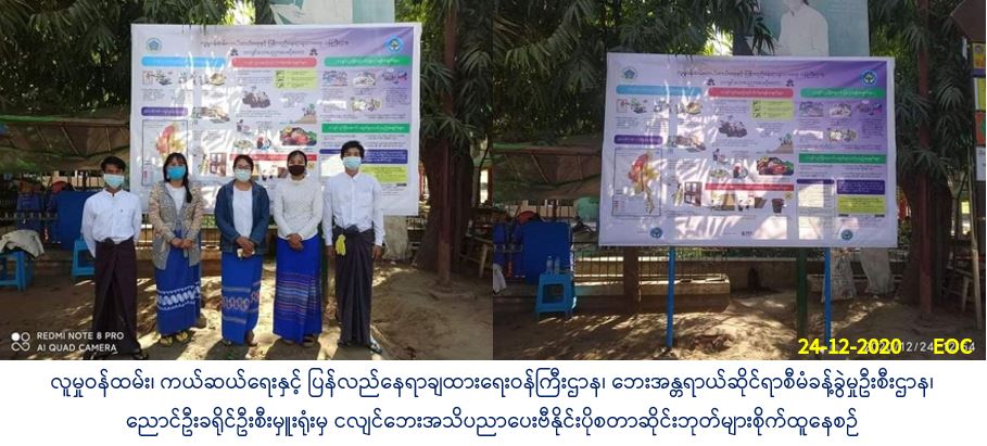 လူမှုဝန်ထမ်း၊ ကယ်ဆယ်ရေးနှင့် ပြန်လည်နေရာချထားရေးဝန်ကြီးဌာန၊ ဘေးအန္တရာယ်ဆိုင်ရာစီမံခန့်ခွဲမှုဦးစီးဌာန၊ ညောင်ဦးခရိုင်ဦးစီးမှူးရုံးမှ တာဝန်ရှိသူများသည် (၂၄-၁၂-၂၀၂၀) ရက်နေ့၌ ညောင်ဦးမြို့အတွင်းရှိ ပြည်သူအများ သဘာဝဘေး အသိပညာဗဟုသုတရရှိစေရန်နှင့် ဆောင်ရန်/ရှောင်ရန် အချက်များကို သိရှိစေနိုင်ရန် ရည်ရွယ်၍ ညောင်ဦးမြို့၊ သံတဲအဝိုင်း လမ်းဆုံ၌ ငလျင်ဘေးအသိပညာပေးဗွီနိုင်းပိုစတာဆိုင်းဘုတ်အား စိုက်ထူခဲ့ပါကြောင်း သတင်းရရှိပါသည်။