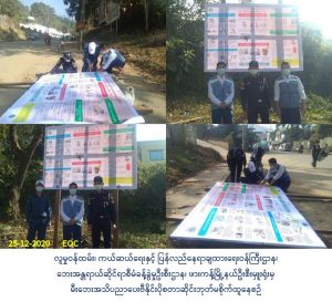 လူမှုဝန်ထမ်း၊ ကယ်ဆယ်ရေးနှင့် ပြန်လည်နေရာချထားရေးဝန်ကြီးဌာန၊ ဘေးအန္တရာယ်ဆိုင်ရာစီမံခန့်ခွဲမှုဦးစီးဌာန၊ ဖားကန့်မြို့နယ်ဦးစီးမှူးရုံးမှ တာဝန်ရှိသူများသည် (၂၅-၁၂-၂၀၂၀) ရက်နေ့၊ (၁၀:၃၀)နာရီအချိန်၌ ဖားကန့်မြို့နယ်၊ ငှက်ပျောတောရပ်ကွက်၊ ဆေးရုံဟောင်းရှေ့တွင် မီးဘေးအန္တရာယ်နှင့်ပတ်သက်၍ ဆောင်ရန်/ ရှောင်ရန်များအား အများပြည်သူ များ အလွယ်တကူသိရှိနားလည်ဖတ်ရှုနိုင်ရန်ဗွီနိုင်းပိုစတာများစိုက်ထူဆောင်ရွက်ခဲ့ပါကြောင်း သတင်းရရှိပါသည်။