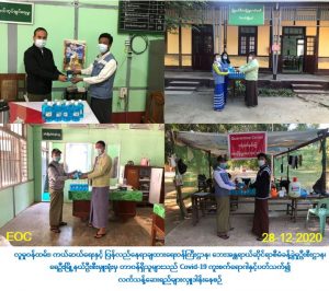 လူမှုဝန်ထမ်း၊ ကယ်ဆယ်ရေးနှင့် ပြန်လည်နေရာချထားရေးဝန်ကြီးဌာန၊ ဘေးအန္တရာယ် ဆိုင်ရာစီမံခန့်ခွဲမှုဦးစီးဌာန၊ ရေဦးမြို့နယ်ဦးစီးမှူးရုံးမှ တာဝန်ရှိသူများသည် (၂၈-၁၂-၂၀၂၀) ရက်နေ့တွင် ရေဦးမြို့နယ် COVID-19 ထိန်းချုပ်ရေးနှင့် အရေးပေါ်တုန့်ပြန်ရေးကော်မတီထံ သို့ Hand Sanitizer 500ml (၅၀)ဗူး၊ တန့်ဆည်မြို့နယ် COVID-19 ထိန်းချုပ်ရေးနှင့် အရေးပေါ်တုန့်ပြန်ရေးကော်မတီထံသို့ Hand Sanitizer 500ml (၅၀)ဗူး၊ ဒီပဲယင်းမြို့နယ် COVID-19 ထိန်းချုပ်ရေးနှင့် အရေးပေါ်တုန့်ပြန်ရေးကော်မတီထံသို့ Hand Sanitizer 500ml (၅၀)ဗူး၊ ရေဦးမြို့၊ အ.ထ.က(၁)ကွာရန်တင်းစင်တာသို့ Hand Sanitizer 500ml (၂၅)ဗူး၊ ရေဦးမြို့၊ မြို့ဝင်/ထွက်ဂိတ်များအတွက် Hand Sanitizer 500ml (၁၅)ဗူး တို့အား COVID-19 ကူးစက်ရောဂါပြန့်နှံ့မှုမှ ကာကွယ်နိုင်ရန်အတွက် ပေးအပ်လှူဒါန်းခဲ့ကြောင်း သတင်းးရရှိ ပါသည်၊၊