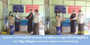 လူမှုဝန်ထမ်း၊ ကယ်ဆယ်ရေးနှင့် ပြန်လည်နေရာချထားရေးဝန်ကြီးဌာန၊ ဘေးအန္တရာယ်ဆိုင်ရာစီမံခန့်ခွဲမှုဦးစီးဌာန၊ ကောလင်းမြို့နယ်ဦးစီးမှူးရုံးမှ တာဝန်ရှိသူများသည် (၂၉-၁၂-၂၀၂၀) ရက်နေ့တွင် ကောလင်းမြို့နယ် အထွေထွေအုပ်ချုပ်ရေးဦးစီးဌာနမှတဆင့် မြို့နယ် COVID-19 ရောဂါကာကွယ်ထိန်းချုပ်ရေး အထောက်ကူပြုကော်မတီသို့ ရောဂါကာကွယ်ထိန်းချုပ်ရေးတွင် အသုံးပြုနိုင်ရန် Hand Sanitizer (500ml) (၆၀) ဘူးအား ထောက်ပံ့ပေးအပ်ခဲ့ပါကြောင်း သတင်းရရှိပါသည်။