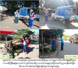 လူမှုဝန်ထမ်း၊ ကယ်ဆယ်ရေးနှင့်ပြန်လည်နေရာချထားရေးဝန်ကြီးဌာန၊ ဘေးအန္တရာယ်ဆိုင်ရာစီမံခန့်ခွဲမှုဦးစီးဌာန၊ ကသာခရိုင်ဦးစီးမှူးရုံးမှ (၂၈.၁၂.၂၀၂၀)နေ့တွင်ကသာမြို့ပေါ်ရပ်ကွက်( ၁၀ )ရပ်ကွက်အား (၁၀းဝဝ)နာရီမှ(၁၃း၀၀)နာရီအချိန်အထိ ရာသီအလိုက်ဖြစ်ပွားတတ်သောသဘာဝဘေးအန္တရာယ်များ၊(COVID-19) နှင့်ပတ်သက်၍ ပြည်သူလူထုသို့ အသိပညာပေးလုပ်ငန်းဆောင်ရွက်ခြင်းနှင့်၊ မီးဘေးလက်ကမ်းစာစောင်စာများဖြန့်ဝေခြင်းများ ဆောင်ရွက်ခဲ့ကြောင်း သတင်းရရှိပါသည်။