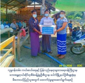 လူမှုဝန်ထမ်း၊ ကယ်ဆယ်ရေးနှင့် ပြန်လည်နေရာချထားရေးဝန်ကြီးဌာန၊ ဘေးအန္တရာယ်ဆိုင်ရာစီမံခန့်ခွဲမှုဦးစီးဌာန၊ ပေါက်မြို့နယ်ဦးစီးမှူးရုံးမှ တာဝန်ရှိသူများသည် (၂၈-၁၂-၂၀၂၀) ရက်နေ့၊ (၁၁း၂၀) နာရီအချိန်၌ပေါက်မြို့နယ်၊ တပ်ကုန်းကျေးရွာအုပ်စု၊ ရွာသစ်ကျးရွာတွင် ဖြစ်ပွားခဲ့သော မီးဘေးကြောင့် မီးဘေးသင့်အိမ်ခြေ (၁)လုံးအတွက် အိမ်ဆောက်ပစ္စည်းဖိုးထောက်ပံ့ငွေ (၁၀၀၀၀၀/-)ကျပ်၊ ဘေးသင့်လူဦးရေ(၅)ဦးအတွက် ဆန်ရိက္ခာ(၇)ရက်စာဖိုးထောက်ပံ့ငွေ (၁၀၅၀၀/-) ကျပ်နှင့်ကယ်ဆယ်ရေးပစ္စည်း (၂၁) မျိုးပါ (၁) အိမ်ထောင်စာကို (၂၉-၁၂-၂၀၂၀)ရက်နေ့၊ (၁၄း၀၀)နာအချိန်တွင် မီးဘေးသင့် အိမ်ထောင်စုထံသို့ ကျေးရွာအုပ်ချုပ်ရေးမှူးနှင့်အတူ လက်ဝယ်ရောက် ထောက်ပံ့ခဲ့ပါကြောင်း သတင်းရရှိပါသည်။