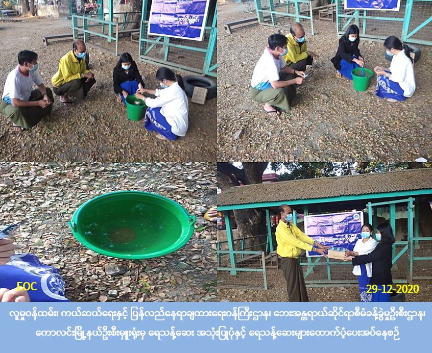 လူမှုဝန်ထမ်း၊ ကယ်ဆယ်ရေးနှင့် ပြန်လည်နေရာချထားရေးဝန်ကြီးဌာန၊ ဘေးအန္တရာယ်ဆိုင်ရာစီမံခန့်ခွဲမှုဦးစီးဌာန၊ ကောလင်းမြို့နယ်ဦးစီးမှူးရုံးမှ တာဝန်ရှိသူများသည် (၂၉-၁၂-၂၀၂၀) ရက်နေ့တွင် ကောလင်းမြို့ Quarantine Center သို့ ရေသန့်ဆေးများ ထောက်ပံ့ပေးအပ်ခဲ့ပြီး ရေသန့်ဆေးအသုံးပြုပုံများကိုလည်း စမ်းသပ်စစ်ဆေးမှုများ ပြုလုပ်ဆောင်ရွက်ခဲ့ပါကြောင်း သတင်းရရှိပါသည်။