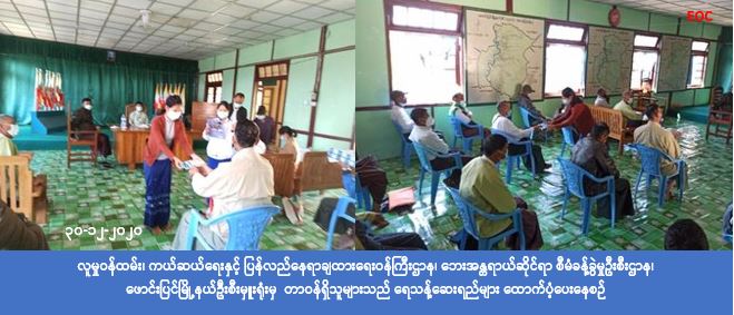 လူမှုဝန်ထမ်း၊ ကယ်ဆယ်ရေးနှင့်ပြန်လည်နေရာချထားရေးဝန်ကြီးဌာန၊ ဘေးအန္တရာယ်ဆိုင်ရာစီမံခန့်ခွဲမှုဦးစီး ဌာန၊ ဖောင်းပြင်မြို့နယ်ဦးစီးမှူးရုံးမှ တာဝန်ရှိသူများသည် (၃၀-၁၂-၂၀၂၀)ရက်နေ့ (၁၄:၀၀)နာရီအချိန်တွင် ဖောင်းပြင်မြို့နယ် အထွေထွေအုပ်ချုပ်ရေး ဦးစီးဌာန အစည်းအဝေးခန်းမ၌ မြစ်ရေ၊ ချောင်းရေကို သောက်ရေ အဖြစ် အသုံးပြုရသော ကျေးရွာများအတွက် ရေသန့်ဆေး များ ထောက်ပံ့ပေးအပ်ခဲ့ပြီး အသုံးပြုပုံများကို ရှင်းလင်း ပြောကြားခဲ့ကြောင်း သိရှိရပါသည်။