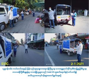 လူမှုဝန်ထမ်း၊ ကယ်ဆယ်ရေးနှင့် ပြန်လည်နေရာချထားရေးဝန်ကြီးဌာန၊ ဘေးအန္တရာယ် ဆိုင်ရာစီမံခန့်ခွဲမှုဦးစီးဌာန၊ ကသာခရိုင်ဦးစီးမှူးရုံးမှ တာဝန်ရှိသူများသည် (၂-၁-၂၀၂၁) ရက်နေ့၊ (၁၅:၀၀) နာရီအချိန်မှ (၁၇:၀၀)နာရီအချိန်အထိ ကသာမြို့ပေါ်ရှိရပ်ကွက်များတွင် Covid -19 ကူးစက်မြန်ရောဂါနှင့်ပတ်သက်၍ ဆောင်ရန်/ရှောင်ရန် အချက်များအား ပြည်သူလူထုသို့ အသိပညာပေးလုပ်ငန်းဆောင်ရွက်ခဲ့ကြောင်း သတင်းရရှိပါသည်။