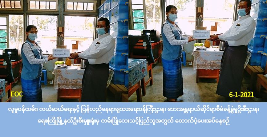 လူမှုဝန်ထမ်း၊ ကယ်ဆယ်ရေးနှင့် ပြန်လည်နေရာချထားရေးဝန်ကြီးဌာန၊ ဘေးအန္တရာယ်ဆိုင်ရာစီမံခန့်ခွဲမှုဦးစီးဌာန၊ ရေစကြိုမြို့နယ်ဦးစီးမှူးရုံးမှ တာဝန်ရှိသူများသည် ရေစကြိုမြို့နယ်၊ အောင်ပန်းချောင်းကျေးရွာအုပ်စု၊ အောင်ပန်းချောင်းကျေးရွာတွင် (၅-၁-၂၀၂၁) ရက်နေ့၊ (၀၉:ဝဝ) အချိန်၌ ချင်းတွင်းမြစ်ရေတိုက်စားကမ်းပါးပြိုကျမှုကြောင့် ကြိုတင်ဖျက်သိမ်းပြောင်းရွှေ့ခြင်းများ ဆောင်ရွက်ခဲ့ကြရာ ကြိုတင်ဖျက်သိမ်းပြောင်းရွှေ့လူနေအိမ်ခြေ(၁၁)လုံး၊ အိမ်ထောင်စု(၁၃)စု၊ လူဦးရေ(၅၉)ဦးတို့အတွက် အိမ်ဆောက်ပစ္စည်းဖိုး(၁,၁၀၀,၀၀ဝ)၊ ဆန်ရိက္ခာဖိုး(၁၂၃,၉၀ဝ) ကျပ်၊ စုစုပေါင်း (၁,၂၂၃,၉၀ဝ) ကျပ်အား (၆-၁-၂၀၂၁) ရက်နေ့၊ (၁၅:၀၀) အချိန်တွင်ကျေးရွာအုပ်ချုပ်ရေးမှူးလက်ဝယ်အရောက် ထောက်ပံ့ပြီးဖြစ်ပါကြောင်း သတင်းရရှိပါသည်။