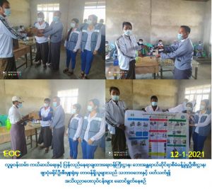 လူမှုဝန်ထမ်း၊ ကယ်ဆယ်ရေးနှင့် ပြန်လည်နေရာချထားရေးဝန်ကြီးဌာန၊ ဘေးအန္တရာယ် ဆိုင်ရာစီမံခန့်ခွဲမှုဦးစီးဌာန၊ ဖျာပုံခရိုင်ဦးစီးမှူးရုံးမှ တာဝန်ရှိသူများသည် (၁၂-၁-၂၀၂၁)ရက်နေ့တွင် ဖျာပုံမြို့၊ သောကြာကျေးရွာအုပ်စု၊ မင်္ဂလာသောင်တန်းကျေးရွာတွင် Covid-19 ကူးစက်ရောဂါနှင့် ပတ်သက်၍ ရေသန့်ဆေးထုတ်ဘူး(၃)ဘူး၊ သဘာဝဘေးနှင့် ပတ်သက်၍ ဆူနာမီဘေးအန္တရာယ်အသိပညာပေးဗီနိူင်း (၁) ခုနှင့် လက်ကမ်းစာစောင်များပေးအပ်ခဲ့ ကြောင်း သတင်းရရှိပါသည်။