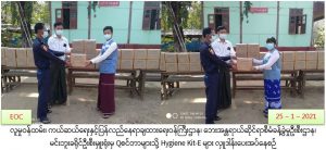 လူမှုဝန်ထမ်း၊ ကယ်ဆယ်ရေးနှင့်ပြန်လည်နေရာချထားရေးဝန်ကြီးဌာန၊ ဘေးအန္တရာယ်ဆိုင်ရာစီမံခန့်ခွဲမှုဦးစီးဌာန၊ မင်းဘူးခရိုင်ဦးစီးမှူးရုံးမှ တာဝန်ရှိသူများသည် မင်းဘူးမြို့၊ အမှတ်(၁) အခြေခံပညာအထက်တန်းကျောင်း၌ ဖွင့်လှစ်ထားရှိသော Quarantine center သို့ ပစ္စည်း(၅)မျိုးပါ Hygiene Kit-E (၇၅)ပုံးအား (၂၅-၁-၂၀၂၁)ရက်နေ့တွင် သွားရောက်လှူဒါန်းခဲ့ကြောင်း သတင်းရရှိပါသည်။