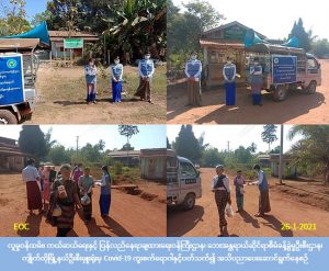 လူမှုဝန်ထမ်း၊ ကယ်ဆယ်ရေးနှင့် ပြန်လည်နေရာချထားရေးဝန်ကြီးဌာန၊ ဘေးအန္တရာယ်ဆိုင်ရာစီမံခန့်ခွဲမှုဉီးစီးဌာန၊ ကျိုက်ထိုမြို့နယ်ဦးစီးမှူးရုံးမှ တာဝန်ရှိသူများသည် (၂၆-၁-၂၀၂၁) ရက်နေ့၊ (၁၀:၀၀) အချိန်မှ (၁၃:၀၀)အချိန်ထိ မွန်ပြည်နယ်၊ သထုံခရိုင်၊ ကျိုက်ထိုမြို့နယ်၊ ကျွန်းတောကျေးရွာနှင့် ပျဉ်းမစခန်းကျေးရွာတို့တွင် Covid-19 ရောဂါ ကူးစက်ပျံ့နှံ့မှုများမဖြစ်ပွားစေရေး အသိပညာပေးခြင်းလုပ်ငန်းအား အသံချဲ့စက်ဖြင့် လိုက်လံအသိပေးကြေညာခဲ့ပြီး လက်ကမ်းစာစောင်များ ဝေငှခဲ့ပါကြောင်း သတင်းရရှိပါသည်။