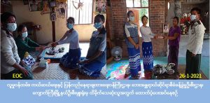 လူမှုဝန်ထမ်း၊ ကယ်ဆယ်ရေးနှင့် ပြန်လည်နေရာချထားရေးဝန်ကြီးဌာန၊ ဘေးအန္တရယ်ဆိုင်ရာစီမံခန့်ခွဲမှုဦးစီးဌာန၊ တောင်ငူခရိုင်၊ ကျောက်ကြီးမြို့နယ်ဦးစီးမှူးရုံးမှ တာဝန်ရှိသူများသည် (၁၉-၁-၂၀၂၁) ရက်နေ့၌ ဖြစ်ပွားခဲ့သော KNU အဖွဲ့မှ လက်နက်ငယ်များဖြင့် ပစ်ခတ်မှုကြောင့် သေဆုံးခဲ့သည့် ကျောက်ကြီးမြို့၊ တောင်ငူတန်းရပ်ကွက်နေသူ (၂) ဦးအား (၁) ဦးလျှင် ထောက်ပံ့ငွေ (၃၀၀,၀၀၀) ကျပ်နှုန်းဖြင့် စုစုပေါင်းထောက်ပံ့ငွေ (၆၀၀,၀၀၀) ကျပ်အား ၎င်းတို့မိသားစုဝင်များထံသို့ (၂၆-၁-၂၀၂၁) ရက်နေ့ (၁၁:၀၀) အချိန်တွင် လက်ဝယ်အရောက် ထောက်ပံ့ပေးအပ်ခဲ့ပါကြောင်း သတင်းရရှိပါသည်။