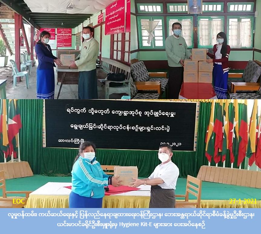 လူမှုဝန်ထမ်း၊ ကယ်ဆယ်ရေးနှင့် ပြန်လည်နေရာချထားရေးဝန်ကြီးဌာန၊ ဘေးအန္တရာယ်ဆိုင်ရာစီမံခန့်ခွဲမှုဦးစီးဌာန၊ ယင်းမာပင်ခရိုင်ဦးစီးမှူးရုံးမှ တာဝန်ရှိသူများသည် (၂၇-၁-၂၀၂၁) ရက်နေ့တွင် Covid-19 ရောဂါကာကွယ်ရေးအတွက် Hygiene Kit-E (၁၅) ဖာတို့အား Covid-19 မြို့နယ်အဆင့်ကော်မတီအတွက် ယင်းမာပင်မြို့တွင် (၅)ဖာ၊ ဆားလင်ကြီးမြို့တွင် (၅)ဖာ၊ ပုလဲမြို့တွင် (၅)ဖာ တို့အား သက်ဆိုင်ရာ အထွေထွေအုပ်ချုပ်ရေးဦးစီးဌာနများသို့ သွားရောက်ထောက်ပံ့ပေးအပ်ခဲ့ပါကြောင်း သတင်းရရှိပါသည်။