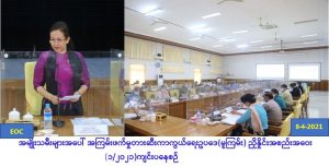လူမှုဝန်ထမ်း၊ကယ်ဆယ်ရေးနှင့်ပြန်လည်နေရာချထားရေးဝန်ကြီးဌာန၊ လူမှုဝန်ထမ်း ဦးစီးဌာနက ဦးဆောင်၍ ဆက်စပ်ဌာနဆိုင်ရာများ / အဖွဲ့အစည်းများနှင့် ရေးဆွဲထားရှိသည့် အမျိုးသမီးများအပေါ် အကြမ်းဖက်မှုတားဆီးကာကွယ်ဥပဒေ( မူကြမ်း )အား အတည်ပြုပြဋ္ဌာန်း နိုင်ရေး ညှိနှိုင်းအစည်းအဝေး(၁/၂၀၂၁) ကို ယနေ့နံနက် ( ၁၀ )နာရီတွင် နေပြည်တော်ရှိ လူမှုဝန်ထမ်း၊ ကယ်ဆယ်ရေးနှင့် ပြန်လည်နေရာချထားရေးဝန်ကြီးဌာန၊ ဝန်ကြီးရုံးစုပေါင်း အစည်းအဝေးခန်းမ၌ ကျင်းပပြုလုပ်သည်။