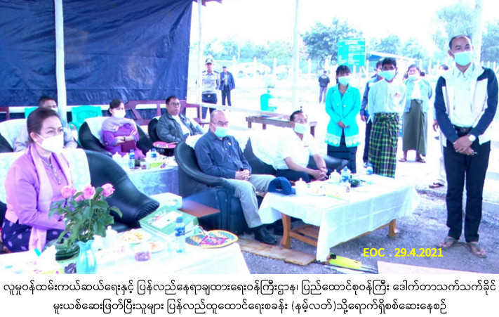 လူမှုဝန်ထမ်းကယ်ဆယ်ရေးနှင့် ပြန်လည်နေရာချထားရေးဝန်ကြီးဌာန၊ ပြည်ထောင်စုဝန်ကြီး ဒေါက်တာသက်သက်ခိုင်သည် ဒုတိယဝန်ကြီး၊ ဦးအောင်ထွန်းခိုင်နှင့်အတူ တာဝန်ရှိသူများလိုက်ပါလျက် ၂၉-၄-၂၀၂၁ ရက်နေ့ ညနေပိုင်းတွင် ရှမ်းပြည်နယ်၊ တောင်ကြီးမြို့နယ်အတွင်း ပြန်လည်ထူထောင်ရေးဦးစီးဌာနလက်အောက်ရှိ မူးယစ်ဆေးဖြတ်ပြီးသူများ ပြန်လည်ထူထောင်ရေးစခန်း (နမ့်လတ်)သို့ရောက်ရှိကြရာ စခန်းအတွင်း ၂၀၂၀-၂၀၂၁ ခု၊ ဘဏ္ဍာရေးနှစ်၊ ဝန်ကြီးဌာနဘတ်ဂျက်ဖြင့် တော်ဝင်ရွှေနန်းကုမ္ပဏီမှ ကျပ်(၂၁၃.၅၀၅)သန်းဖြင့် တင်ဒါအောင်မြင် ဆောက်လုပ်လျက်ရှိသော ပေ၁၀၀xပေ၄၀၊ ၄ ခန်းတွဲ RC နှစ်ထပ်၊ ဝန်ထမ်းအိမ်ရာ ၅၀% ပြီးစီးနေမှုအခြေအနေနှင့် ပိုင်ဖြိုးခန့်ကုမ္ပဏီမှ ကျပ်(၁၂၈.၁၉၉၉)သန်းဖြင့် တင်ဒါအောင်မြင်ဆောက်လုပ်လျက်ရှိသော ပေ၆၀xပေ၄၀၊ RC နှစ်ထပ်၊ စခန်းရုံး(၇၀%)ပြီးစီးကာ လုပ်ငန်းဆောင်ရွက် နေမှုအခြေအနေများကို တာဝန်ယူဆောင်ရွက်နေသည့် ကုမ္ပဏီများမှတာဝန်ရှိသူများက ရှင်းလင်းတင်ပြခဲ့ပြီး ပြည်ထောင်စုဝန်ကြီးနှင့် တာဝန်ရှိသူများက အဆောက်အဦ များရေရှည်တည်တံ့စေရေးအတွက် အရည်အသွေးကြံ့ခိုင်ကောင်းမွန်ရေး၊ သတ်မှတ်လျာထားသည့်အတိုင်း လုပ်ငန်း ပြီးစီးအောင်ဆောင်ရွက်နိုင်ရေးတို့အတွက် အလေးထားဆောင်ရွက်ရန် မှာကြားခဲ့ပြီး လိုအပ်ချက်များကို ညှိနှိုင်းဖြည့်ဆည်းဆောင်ရွက်ပေးခဲ့ပါသည်။
