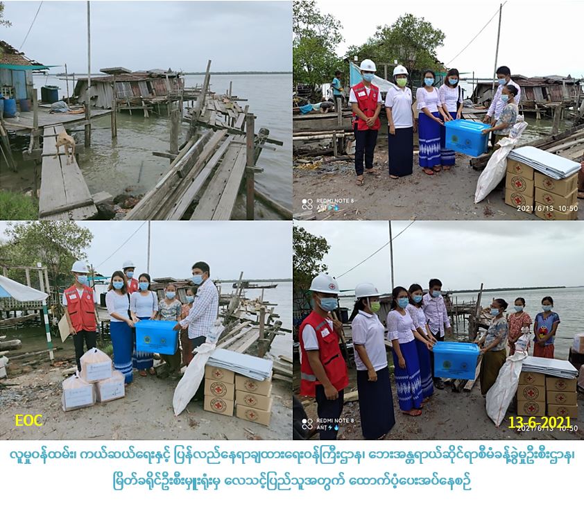 လူမှုဝန်ထမ်း၊ ကယ်ဆယ်ရေးနှင့် ပြန်လည်နေရာချထားရေးဝန်ကြီးဌာန၊ ဘေးအန္တရာယ်ဆိုင်ရာစီမံခန့်ခွဲမှုဦးစီးဌာန၊ မြိတ်ခရိုင်ဦးစီးမှူးရုံးမှ တာဝန်ရှိသူများသည် (၁၁-၆-၂၀၂၁) ရက်နေ့တွင် ကျွန်းစုမြို့နယ်၊ မအိုင်ကျေးရွာအုပ်စု၊ ပထက်ကျေးရွာတွင် ဖြစ်ပွားခဲ့သော လေဘေးသင့်ပြိုကျပျက်စီးနေအိမ်(၁)လုံးအတွက် အိမ်ဆောက်ပစ္စည်းဖိုးငွေ (၂၀၀,၀၀၀) ကျပ်၊ ဘေးသင့်လူဦးရေ(၁၈)ဦးအတွက် (၇) ရက်စာဆန်ရိက္ခာဘိုး (၃၇,၈၀၀) ကျပ်၊ စုစုပေါင်းထောက်ပံ့ငွေ (၂၃၇,၈၀၀) ကျပ်၊ လေဘေးသင့်အိမ်ထောင်စု(၃)စုမှ အိမ်ထောင်စု(၁) စုအတွက် (၄၆,၀၃၆) တန်ဖိုးရှိ ကယ်ဆယ်ရေးပစ္စည်း(၁၆)မျိုးပါတစ်ပုံးတို့အား (၁၃-၆-၂၀၂၁) ရက်နေ့ (၁၁:၀၀) အချိန်တွင် သွားရောက်ထောက်ပံ့ပေးအပ်ခဲ့ပါကြောင်း သတင်းရရှိပါသည်။