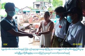 လူမှုဝန်ထမ်း၊ ကယ်ဆယ်ရေးနှင့် ပြန်လည်နေရာချထားရေးဝန်ကြီးဌာန၊ ဘေးအန္တရာယ်ဆိုင်ရာစီမံခန့်ခွဲမှုဦးစီးဌာန၊ အင်္ဂပူမြို့နယ်ဦးစီးမှူးရုံးမှ တာဝန်ရှိသူများသည် အင်္ဂပူမြို့နယ်၊ မဲဇလီကုန်းမြို့၊ အမှတ်(၂)ရပ်ကွက်၊ တာကြီးတန်းလမ်းတွင် (၁၉-၆-၂၀၂၁) ရက်နေ့၌ မိုးရွာသွန်းမှုကြောင့် မြေပွပြီးသစ်ပင်လဲကျမှုဖြစ်ပွားခဲ့ရာ တစ်စိတ်တစ်ပိုင်းပျက်စီး ခဲ့သော အိမ်ခြေ(၁)လုံး ပျက်စီးမှုအတွက် အိမ်ဆောက်ပစ္စည်းဖိုးငွေ(၈၀,၀၀၀)ကျပ်၊ အိမ်ထောင်စု(၁)စုရှိ လူဦးရေ(၈)ဦးတို့အတွက် ဆန်ရိက္ခာဖိုးငွေ(၈,၄၀၀)ကျပ်၊ စုစုပေါင်းရန်ပုံငွေ (၈၈,၄၀၀) ကျပ်အား (၂၂-၆-၂၀၂၁) ရက်နေ့ (၁၄:၀၀) နာရီအချိန်တွင် တာဝန်ရှိသူများနှင့်အတူ ဘေးသင့်ပြည်သူများလက်ဝယ်အရောက် ထောက်ပံ့ပေးအပ်ခဲ့ပါကြောင်း သတင်းရရှိပါသည်။